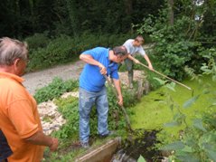 Immer wieder muss das Gras entlang des Teiches gemäht und entfernt werden. Stellvertretend für diese Arbeiten drei Fotos. Herzlichen Dank allen, die sich für diese Arbeiten immer wieder zur Verfügung stellen.