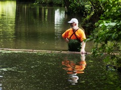 Mühsames Entfernen des Linsenteppiches