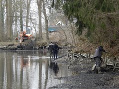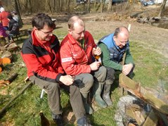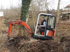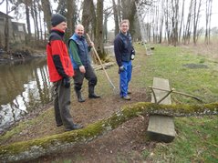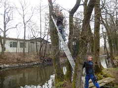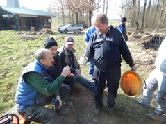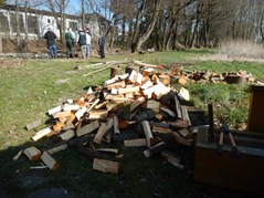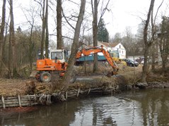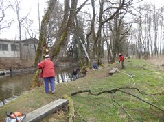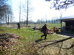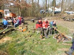 Der Arbeitseinsatz in diesem Jahr wurde auf zwei Tage aufgeteilt, da am Samstag auch mit einem großen Bagger gearbeitet wurde. So wollten wir am Freitag Nachmittag störende Bäume und Sträucher und den in den Teich gefallenen Baum entfernen Als wir ankamen, war zu unserer Überraschung die meiste Arbeit schon getan. Unser Kassier hatte schon am Vormittag mit Florian, Karin und Anni die Bäume gefällt und entfernt. So blieben uns nur mehr Aufräumarbeiten.