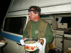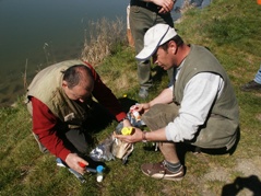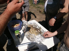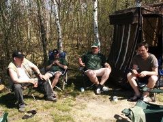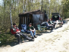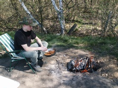 Zwei Nächte und drei Tage fand das übliche "Lagerleben" statt. Abwechslung brachte eine neue Zubereitungsart für Karpfen. Ein Loch wurde gegraben, der Karpfen ordentlich gewürzt und in Folie verpackt, in die Grube gelegt und anschließend wurde ein Feuer darüber angezündet. Der Karpfen schmeckte übrigens ganz hervorragend.
