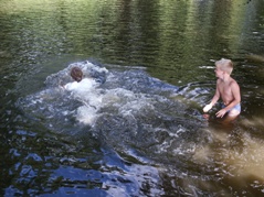Baden im Fischteich kann auch ganz lustig sein!