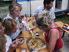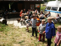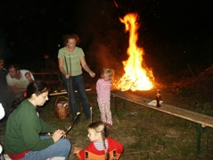 Zum Sonnwendfeuer am Abend kamen mehr Leute als eigentlich erwartet. Es gab ein großes Sonnwendfeuer und ein kleines für die Kinder zum Drüberspringen. Wir setzten uns gemütlich zusammen und grillten. Einige blieben sogar bis zum nächsten Morgen.