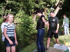 später als im Vorjahr statt, nämlich am 23. Juni. Trotz des schönen Wetters hielt der Abwärtdtrend an. Es nahmen nur 13 Kinder und Jugendliche teil.. Da die Forellen diesmal nicht sehr bissfreudig waren, fiel die Entscheidung unter denjenigen, die das Glück hatten, einen Stör oder einen Karpfen zu fangen.