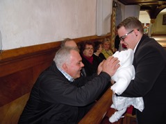 Da sowohl Oma und Opa als auch Mama und Papa und der Taufpate Mitglieder unserer Fischerrunde sind, möchte ich auch ein paar Fotos von der Taufe zeigen. Die Taufe fand am 1.3. in der Pfarrkirche in Lohnsburg statt. Die anschließende Tauffeier fand im Gasthaus Schachinger in Waldzell statt. Leider hatte niemand schon zu Mittag Zeit, die kleine Mia "zu stehlen", wie es eigentlich der Brauch wäre.