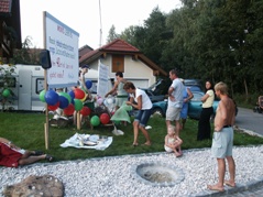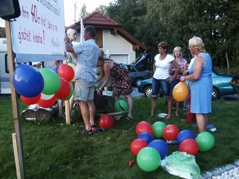 Den letzten runden Geburtstag in diesem Jahr feierte Monika Huber am 27.8. Leider konnte sie schon beim Ausflug am Wochenende nicht mitfahren, da sie im Krankenhaus lag. Und auch an ihrem Geburtstag war sie noch nicht zu Hause. Wir stellten daher das Transparent und das ganze Rundherum erst am Montag auf. Anschließend machten alle, die beim Aufstellen dabei waren, einen Überraschungsbesuch im Krankenhaus. Im Park neben dem Krankenhaus veranstalteten wir ein kleines Geburtstagspicknick. Auch die Geburtstagsfeier musste verschoben werden, und zwar auf Freitag.