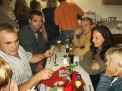 Die verschobene Geburtstagsfeier fand dann am Freitag in Hubers Garage statt. Es gab gemischte Knödel, Pizza und jede Menge Kuchen. Neben den üblichen Getränken gab es auch ein umfangreiches Angebot an Cocktails. Im Rahmen der Geburtstagsfeier wurde auch ein "Vertrag" unterschrieben, in dem es um eine "Wallfahrt" nach Maria Schmolln geht.