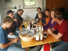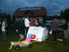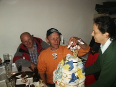 Die Geburtstagsfeier fand dann in der Garage statt und wir wurden mit Weißwürsten und jeder Menge Mehlspeisen verwöhnt. Natürlich kam auch das Trinken nicht zu kurz. Von der Verwandtschaft bekam Reini ein "Spezialfahrrad" und von der Fischerrunde eine "Spezialtorte" überreicht. Auch diese Geburtstagsfeier war sehr lustig und wir bedanken uns beim Gastgeber.