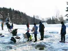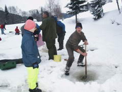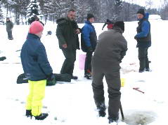 Dieses Jahr dauerte es etwas länger, bis wir einen passenden Termin für das Eisfischen gefunden hatten. Dafür brachte der 19. Februar passendes Wetter: Sonnenschein und milde Temperaturen. Die zuerst Angekommenen hatten das Glück, fertige Löcher vorzufinden, die Letzten mussten sich durch das ca. 30 Zentimeter dicke Eis "durchkämpfen". Sechzehn Fischer der Fischerrunde versuchten ihr Glück. Den besten Platz sicherte sich Sepp Grüll, der auch einen zufriedenstellenden Fang nach Hause brachte. Alle anderen waren mit ihrem Fangergebnis nicht zufrieden und es gab sogar jede Menge "Schneider". Als Stärkung gabs heiße Knacker vom Wirt, die die Stimmung nur vorübergehend etwas hoben.