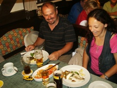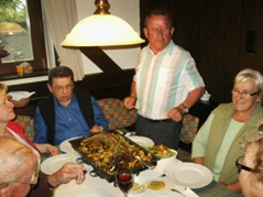 Grüll Josef sen. und Grüll Josef jun. erwischten einen super Tag und fingen gleich drei prächtige Hechte in unserem Vereinsteich. Sie nahmen die Gelegenheit wahr und luden die Mitglieder der Fischerrunde und einige Bekannte zu einem Hechtessen in die Burgtaverne Kobernaußen ein. Nikolaus Moser, der neue Wirt der Burgtaverne, bereitete die Hechte sehr schmackhaft zu. Herzlichen Dank an Grüll Josef sen. und jun. für die Einladung.