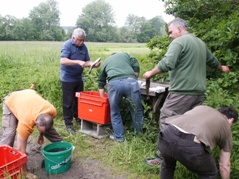 Beim Lohnsburger Kirtag hat der Stand der Fischerrunde schon Tradition. Also nahmen wir auch 2006 mit einem neuen Team teil. Zur Vorbereitung gehört nicht nur das Aufstellen des Zeltes mit all den dazugehörigen Arbeiten, sondern es mussten 100 Forellen ausgenommen, gereinigt und geräuchert werden. Das Räucher übernahm wieder in bewährter Weise unser Kassier Josef Edtmaier, und alle waren wieder von der Qualität der geräucherten Fische begeistert.