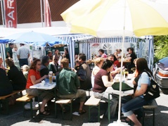 Es ist ganz schön viel los im und vor dem Zelt der Fischerrunde