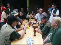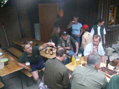 Am 9. Juli trafen sich Mitglieder der Fischerrunde zum jährlich stattfindenden Vereinsabend am Teich verbunden mit einem Nachtfischen. Der Verein spendierte die Getränke, das Essen nahmen sich die Vereinsmitglieder diesmal selbst mit. Nach dem Auslegen der Ruten wurde gespeist und getrunken. Nach dem Anzünden des Lagerfeuers spielte wieder einmal das Wetter nicht mit - es begann kräftig zu regnen. Doch es ließ wieder soweit nach, dass wir uns ans Lagerfeuer setzen konnten.