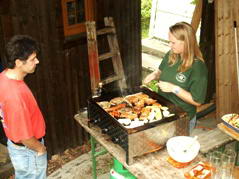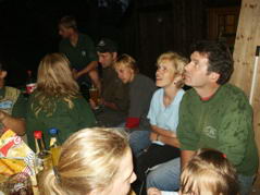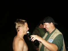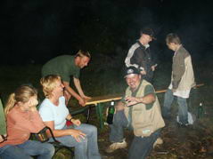 Natürlich wurde auch gefischt. Den ersten Biss hatte unser Obmann, aber in seinem Übereifer riss er die Schnur ab. Beim nächsten Mal hatte er mehr Erfolg. Er drillte einen großen Ast ans Ufer. Enige machten es sich inzwischen am Lagerfeuer gemütlich.