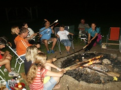 Am ersten Abend gab es ein Lagerfeuer, das wegen Wind und Regen um Mitternacht abgebrochen werden musste.