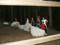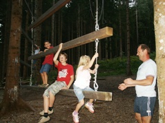 Auf der linken Seeseite befindet sich im Wald ein Hochseilgarten. Nach der Seeumrundung besichtigten wir noch diesen Hochseilgarten, in dem dann am nächsten Tag einige ihre Kletterkünste unter Beweis stellten. Sowohl die Kinder, aber auch einige Erwachsene hatten großen Spaß dabei.